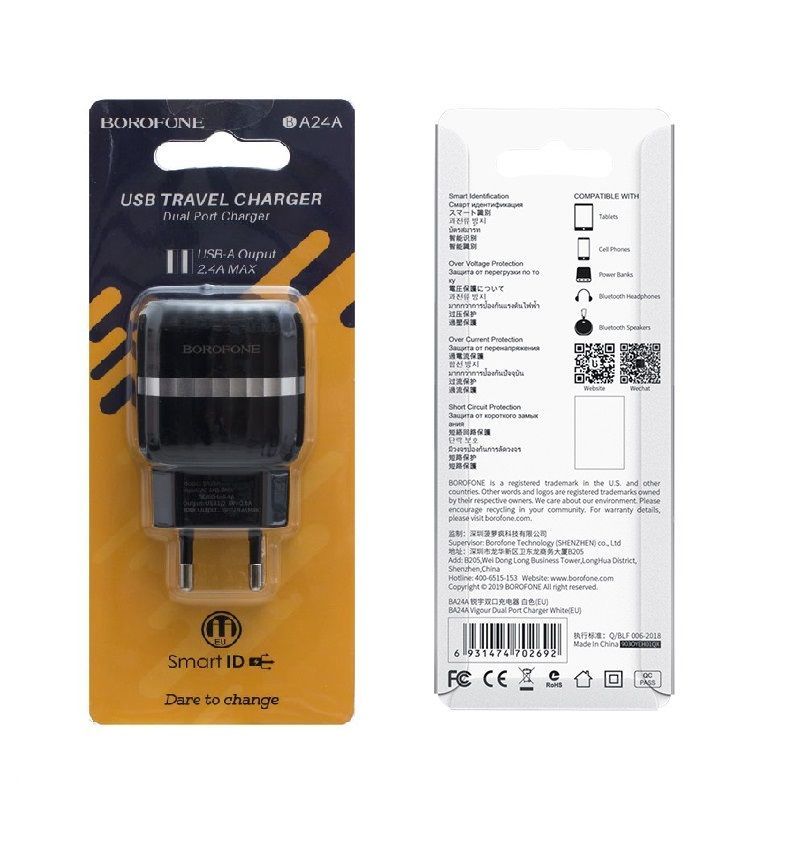 Читать все статьиСЗУ BOROFONE BA-24A 2*USB 2.4A Black