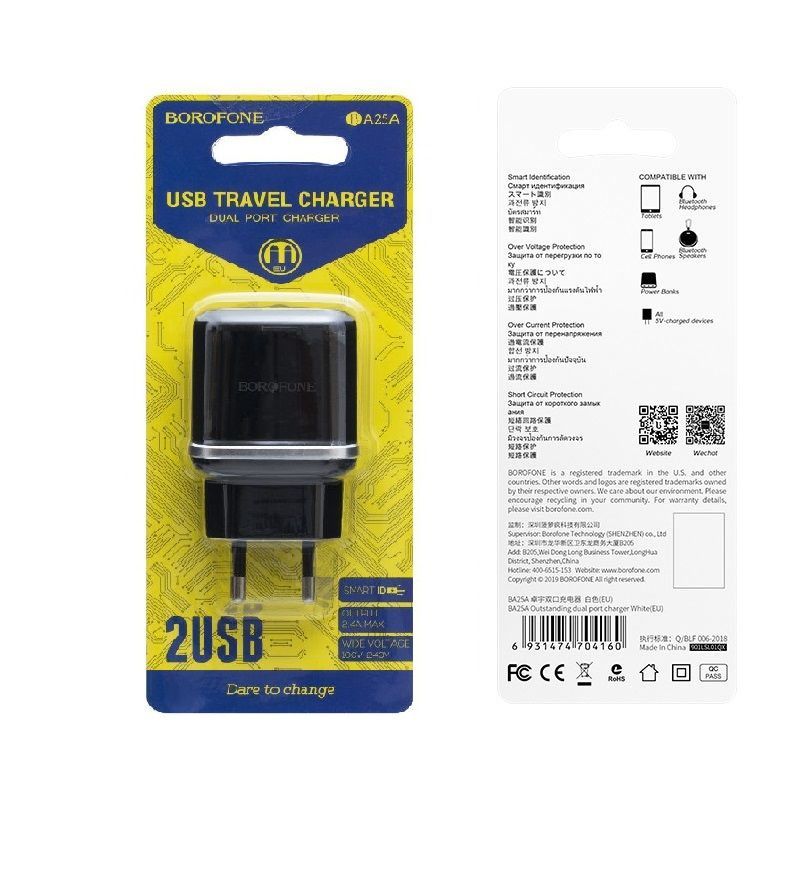 Читать все статьиСЗУ BOROFONE BA-25A 2*USB 2.1A Black