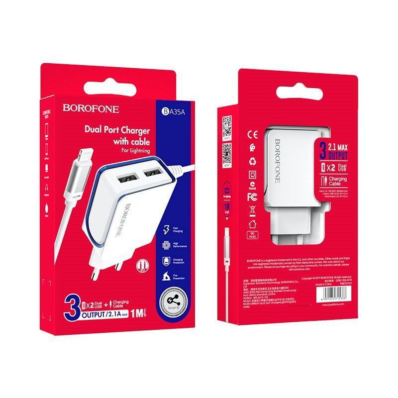 СЗУ BOROFONE BA-35A 2*USB+Lighting 2.1A White