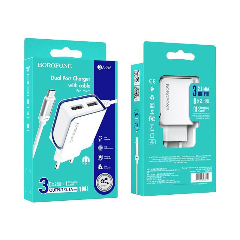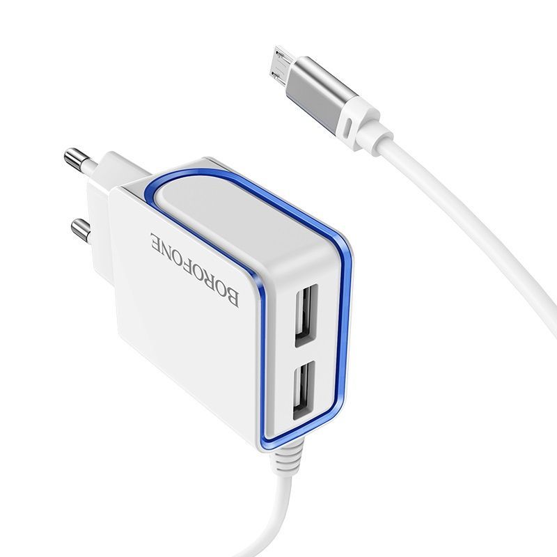 Читать все статьиСЗУ BOROFONE BA-35A 2*USB+Micro 2.1A White
