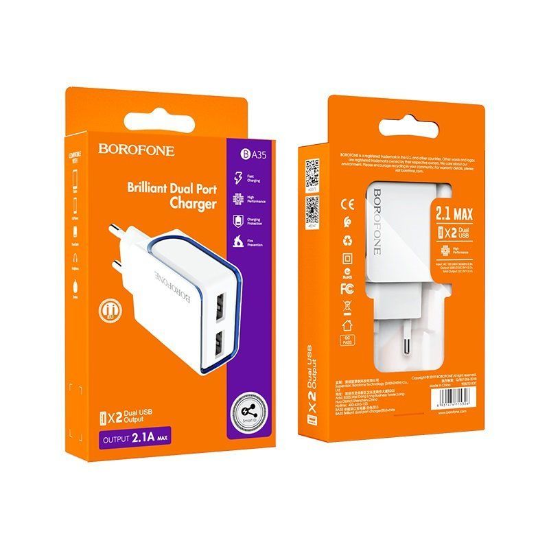 Читать все статьиСЗУ BOROFONE BA-35 2*USB 2.1A White