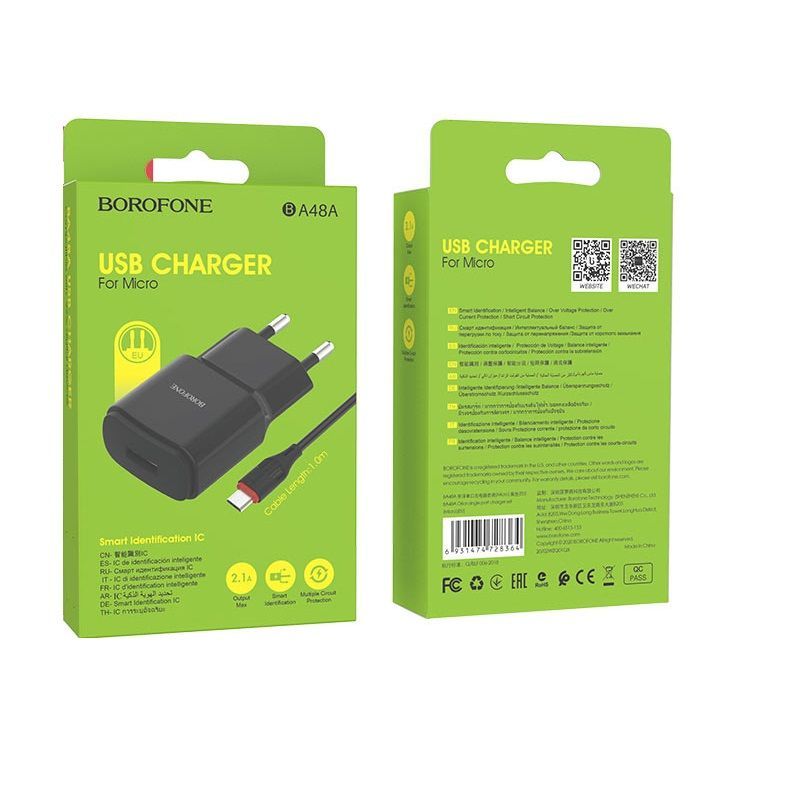 Читать все статьиСЗУ BOROFONE BA-48A 1*USB+micro 2.1A Black