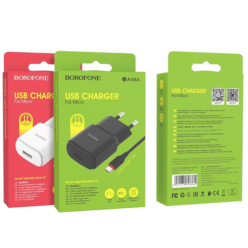 Читать все статьиСЗУ BOROFONE BA-48A 1*USB+micro 2.1A White