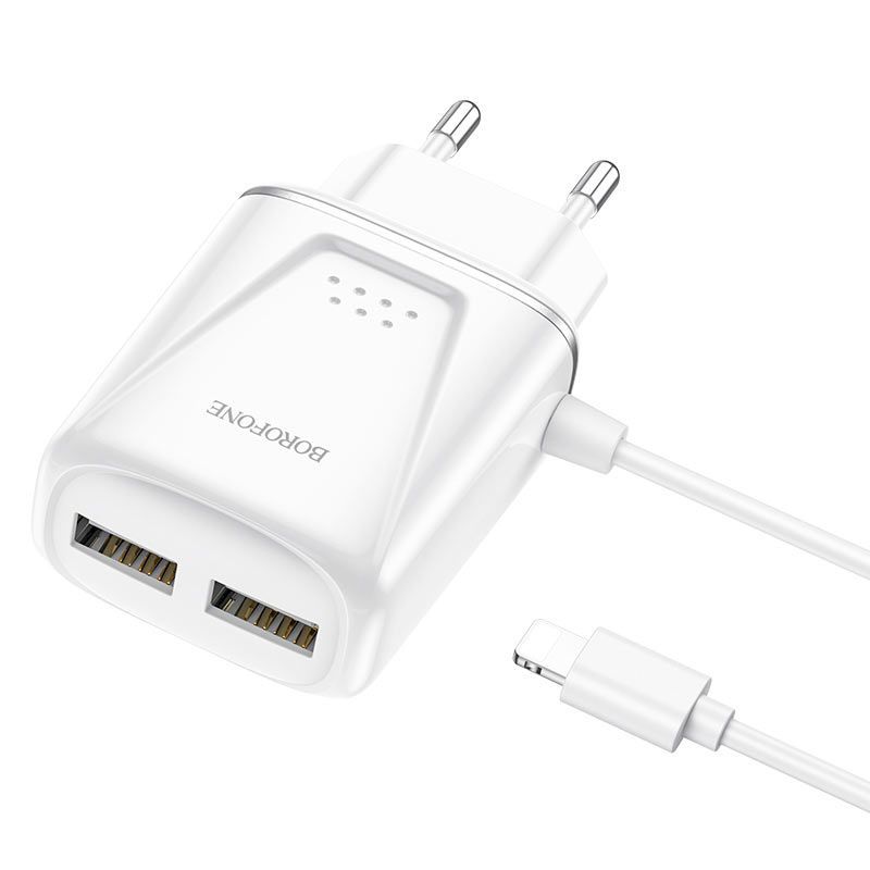 СЗУ BOROFONE BA-50A 2*USB+Lightning 2.1A White