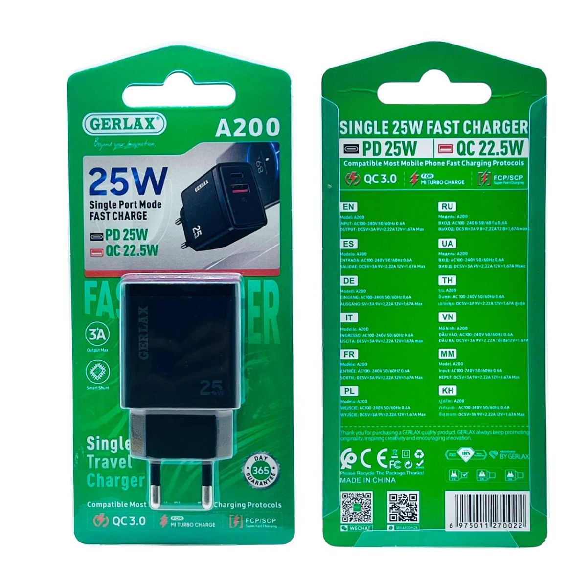 Читать все статьиСЗУ GERLAX A-200 1A1C QC3.0 PD25W Black