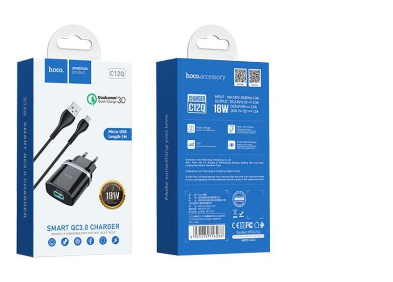 Читать все статьиСЗУ HOCO C12Q QC 3.0 + MicroUSB (Black)