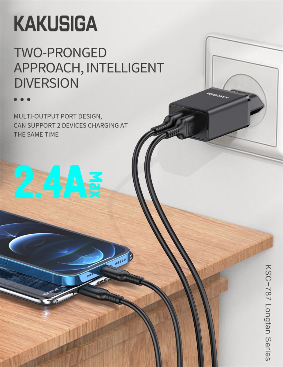 СЗУ KAKUSIGA KSC-787 2xUSB-A 2.4A BLACK