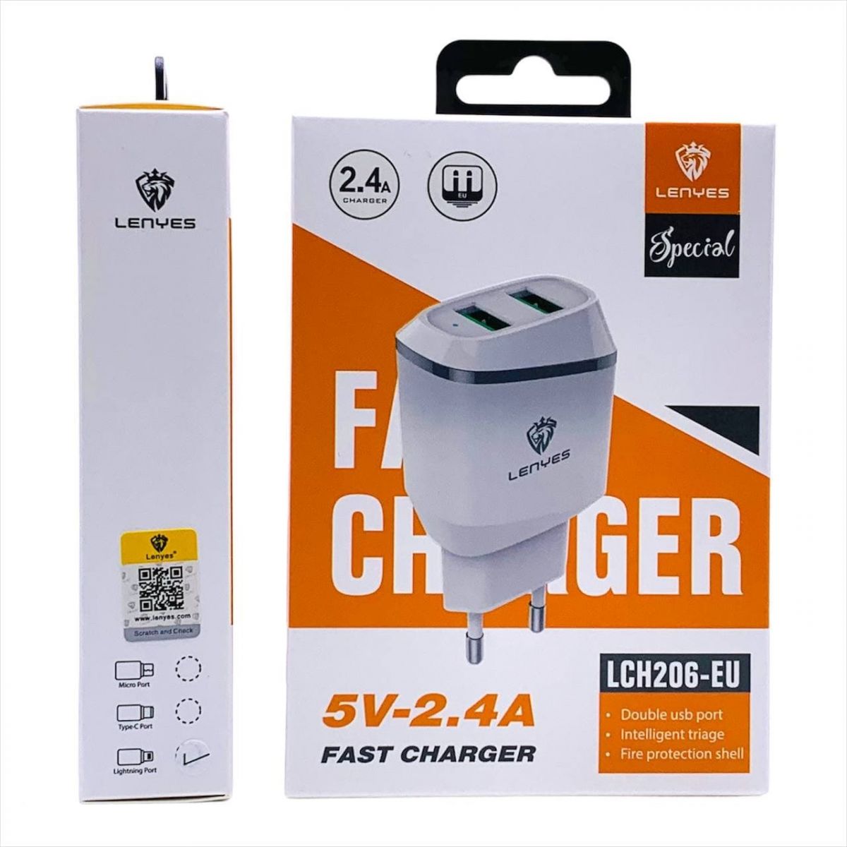 СЗУ LENYES LCH206-EU 2USB LIGTHNING 5V-2.4A WH