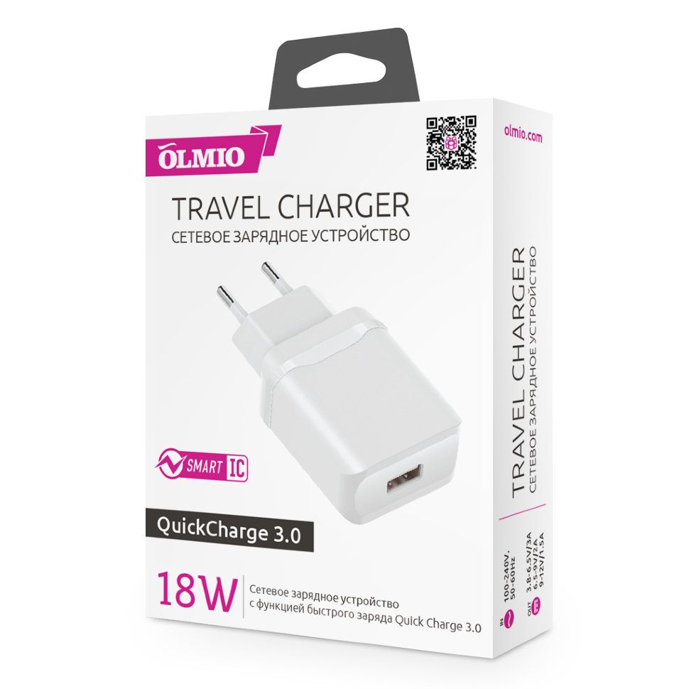 Читать все статьиСЗУ OLMIO 1*USB QC3.0 18W