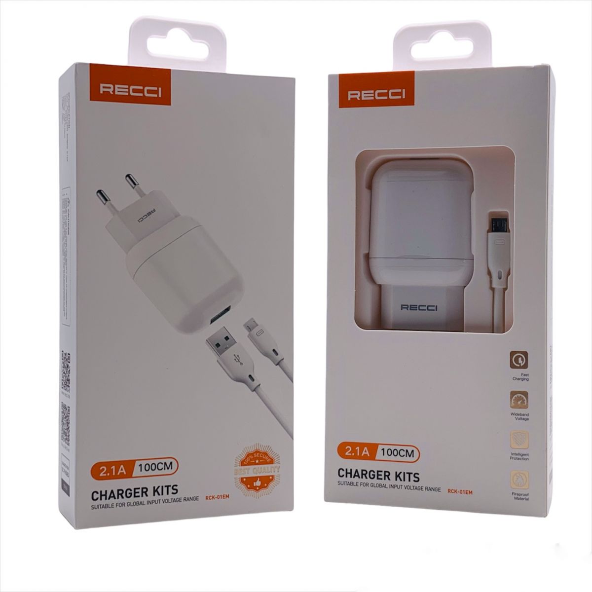 СЗУ RECCI FAST CHARGER MICRO USB 2.1A RCK-01EM WH