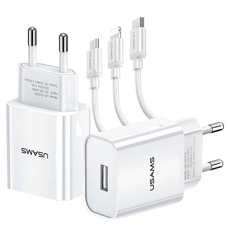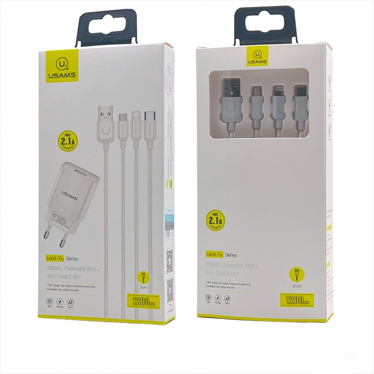 СЗУ USAMS LAND-TU TRAVEL CHARGER 3in1 CABLE SET