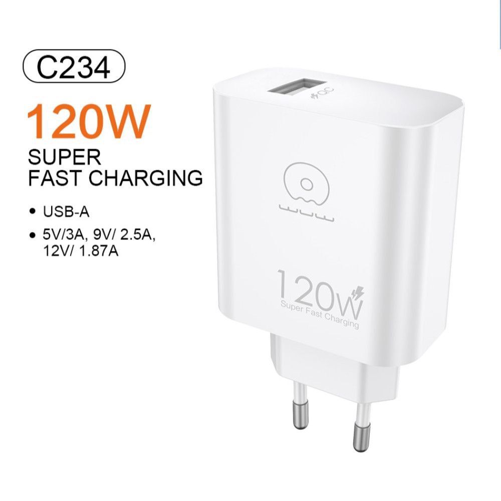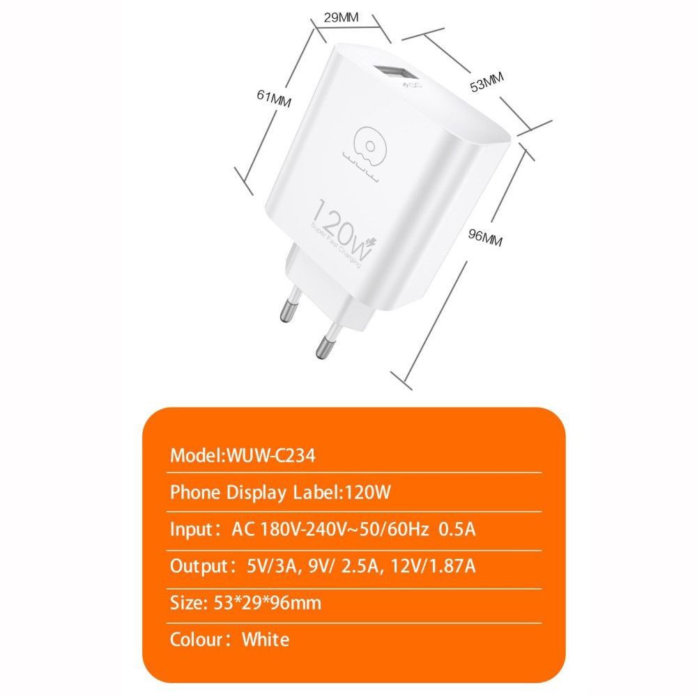 Читать все статьиСЗУ WUW C234 1*USB-A QC3.0 120W White