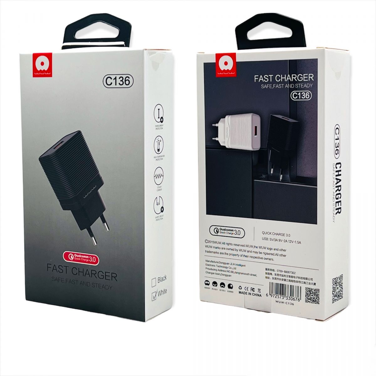 Читать все статьиСЗУ WUW C-136 1*USB QC3.0 White