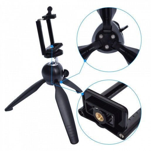 ТРИПОД YUNTENG XH-228 - Штатив настольного типа укомплектован эластичным держателем, который надежно поддерживает крепление камер и смартфонов. Он отличается легкостью и компактностью. Может использоваться для устройств, ширина которых варьируется от 5 до 7,7 см. В комплект так же входит шаровая головка, которую можно вращать на 360 градусов. Блокировку можно поставить специальным переключателем.